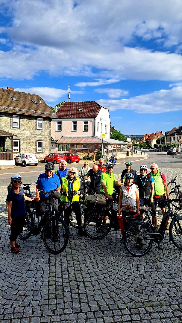 Beeindruckende Bilder von der 110km-Tour: die Route führte über Weismain und an die Wasserfälle dort, weiter durch durch das romantische Bärental, nach Sanspareil mit der Burg Zwernit, mit Ausblicken auf den Ochsenkopf und den Schneeberg. Die Mittagsrast fand in der Waldhütte Eckersdorf statt, und auf der Rückfahrt nach Lichtenfels radelte die Truppe durch den Landkreis Kulmbach. Ein besonderes Lob der Teilnehmer:innen galt dem Touren-Guide Thomas Rehm!
